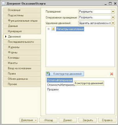 Как создать движение документа с помощью конструктора движений?