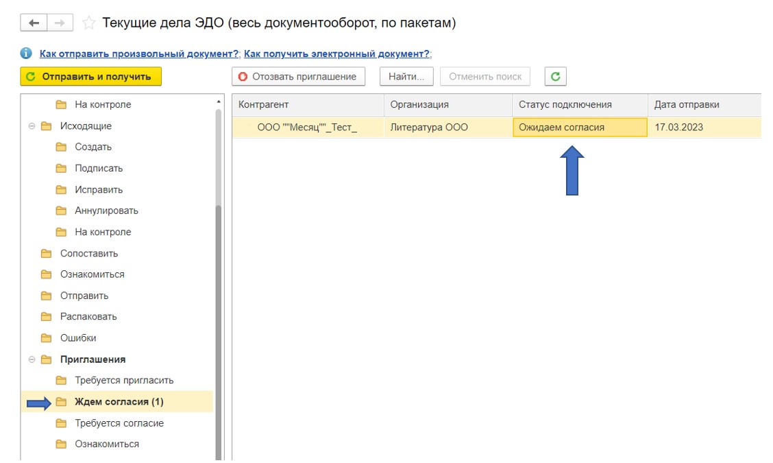 Выполнив настройку роуминга, можно начинать пользоваться всем функционалом (получать или отправлять электронные документы) с контрагентом. Ознакомиться с описанием работы можно в Справочнике электронного документооборота на сайте ИТС.