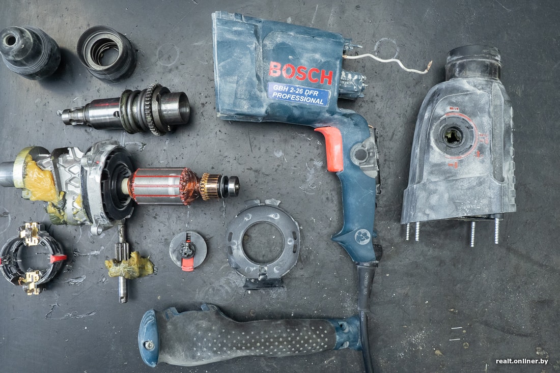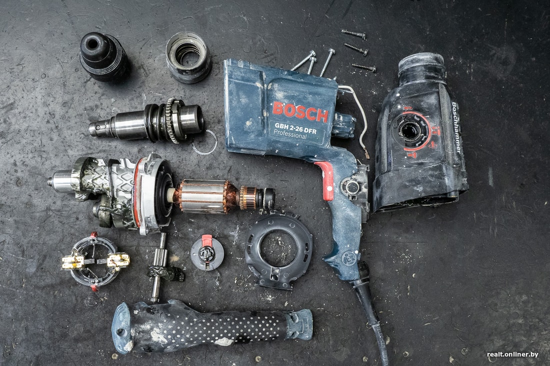 В конце эксперимента снова обратимся к специалистам фирменного сервисного центра Bosch — интересно, что покажет вскрытие инструментов после того, как ими немного поработали.