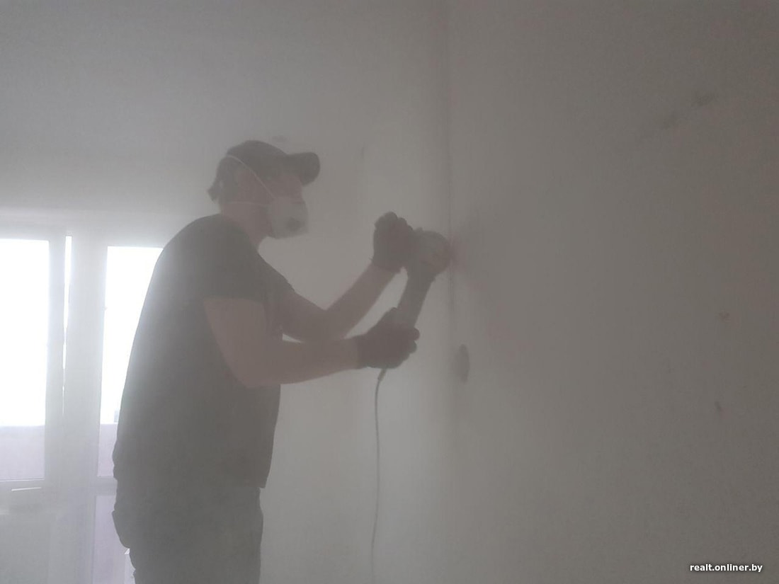Для переноса существующих и устройства дополнительных розеток удобно использовать штраборез. С его помощью можно быстро и ровно сделать каналы для дополнительного кабеля. Ко многим моделям можно подключить строительный пылесос, тем самым обезопасив себя от вредной бетонной пыли. Мы же не стали искать легких путей и решили использовать набор из угловой шлифмашинки и перфоратора. Очки защитные еще. Ну и респираторов одноразовых пакет. Экономия должна быть экономной! Заранее просим прощения за оскорбление чувств профессиональных отделочников, мы не специально.