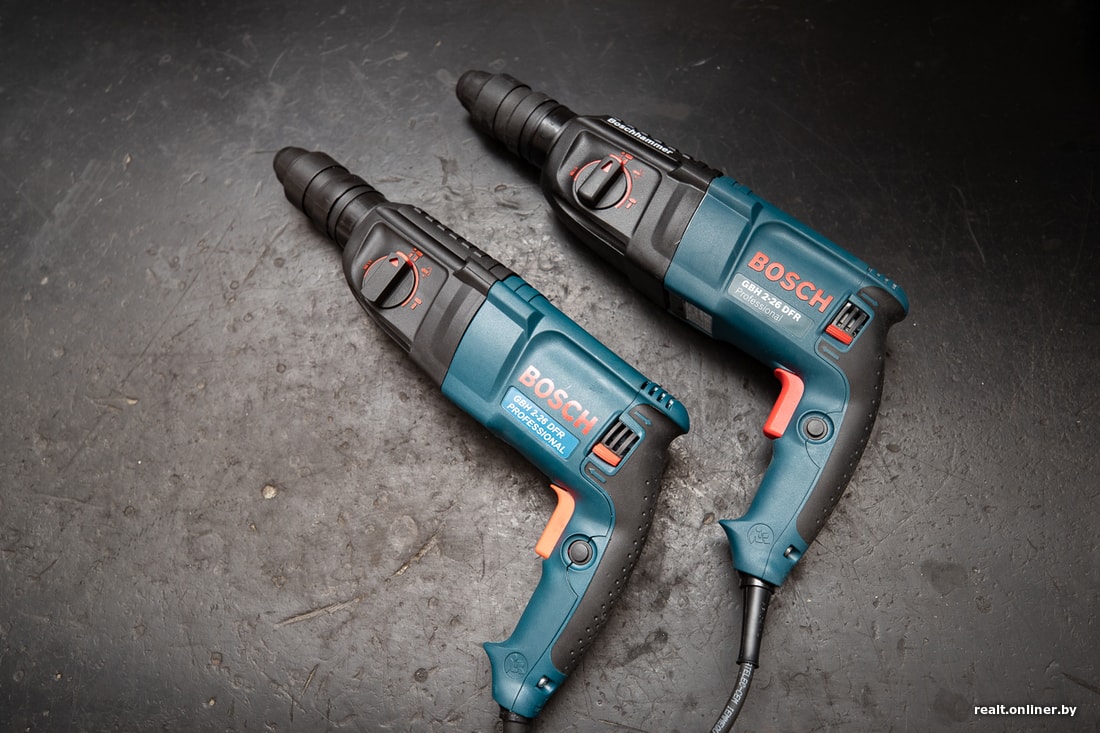 Перфораторы Bosch снабжаются системой удаления пыли, стабилизатором вращения вала, рейкой ограничения глубины сверления, системой «плавного пуска», регулятором скорости вращения, устройствами антивибрационными, устройствами защиты от перегрева. Это все относится к оригинальным конструкциям перфораторов Bosch 2-20, 2-24, 2-26.