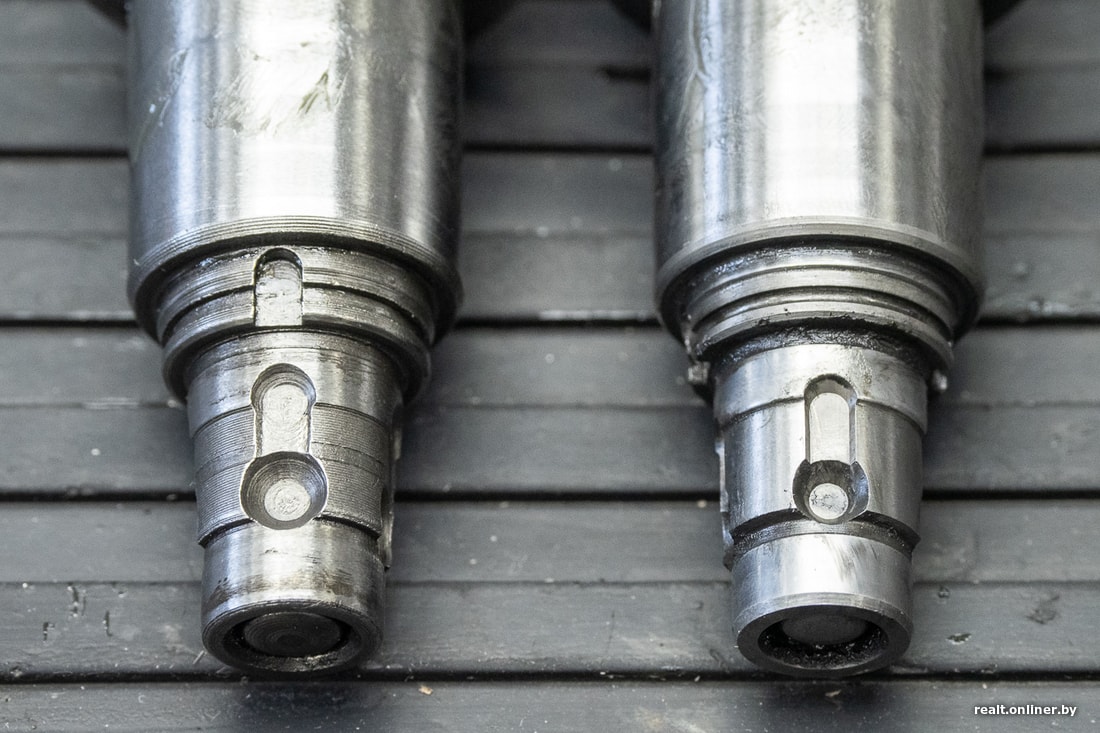 При разборке перфораторов в первую очередь бросилась в глаза более потемневшая смазка у оригинала. По словам специалиста, это указывает на две вещи. Первая — оригинальной моделью работали явно больше и интенсивнее (так и было в действительности). Вторая — смазка темнеет тогда, когда она работает, защищая при этом детали инструмента от преждевременного износа. Смазка в подделке поработать, судя по всему, не успела.